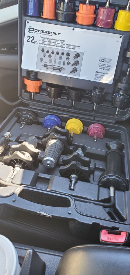 OK so both of my rad caps (caps I bought in the past) are slowly losing pressure according to the kit. Waiting for car to cool down so I can text the system and the new rad cap from the dealer