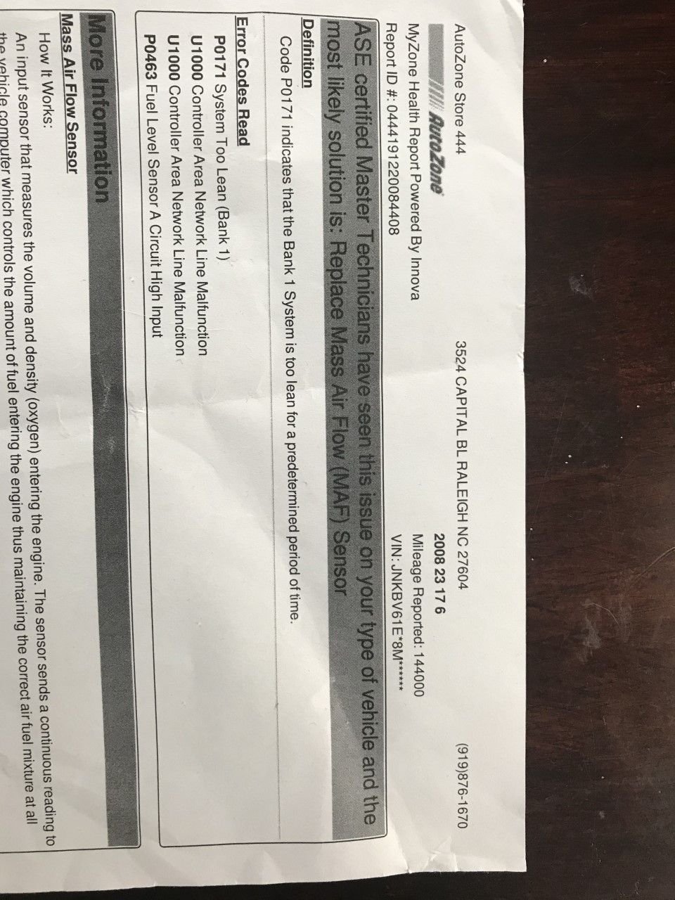Thanks for your input ! I am not a car mechanic a computer tech by trade..I rely on google and auto zone. I am guessing it is MAF as i have 80k on thisG35 and have never cleaned the MAF sensors..I wil clean these first. The autozone person thought it may be a vacum issue..Do you have any suggestions on next step if cleaning the sensor fails?..Thanks for your time !