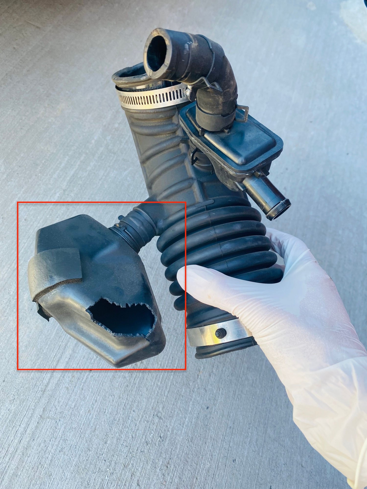 The plastic box does not lead to other parts of the engine (it is a dead end attached to the intake tube). I found my one cracked possibly due to heat and plastic age. I want to buy a replacement but can't find the exact part, I don't want to replace the whole intake tube.
