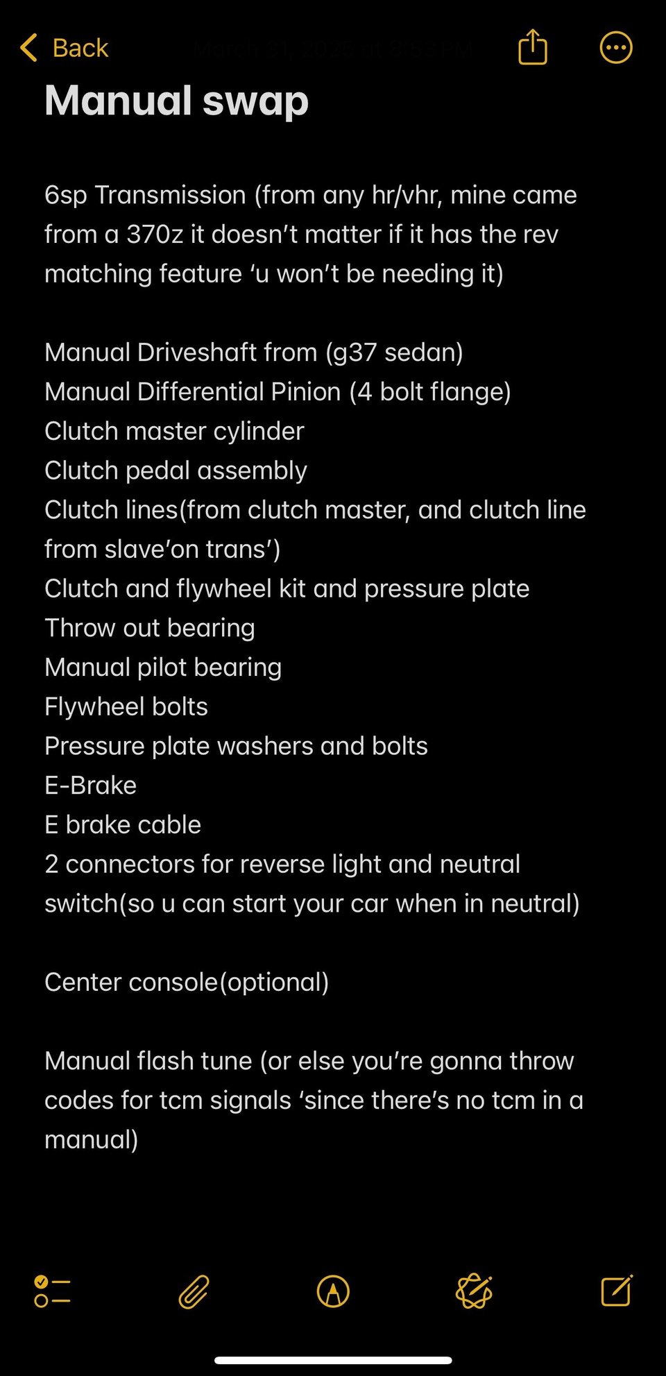 so yeah once again I appreciate you guys reaching out, there’s not much on my 2008 G35 sedan out there as far as 6mt swaps go so I had to dive into alldata and prodemand for schematics. But yeah any questions hit me up and thanks again.