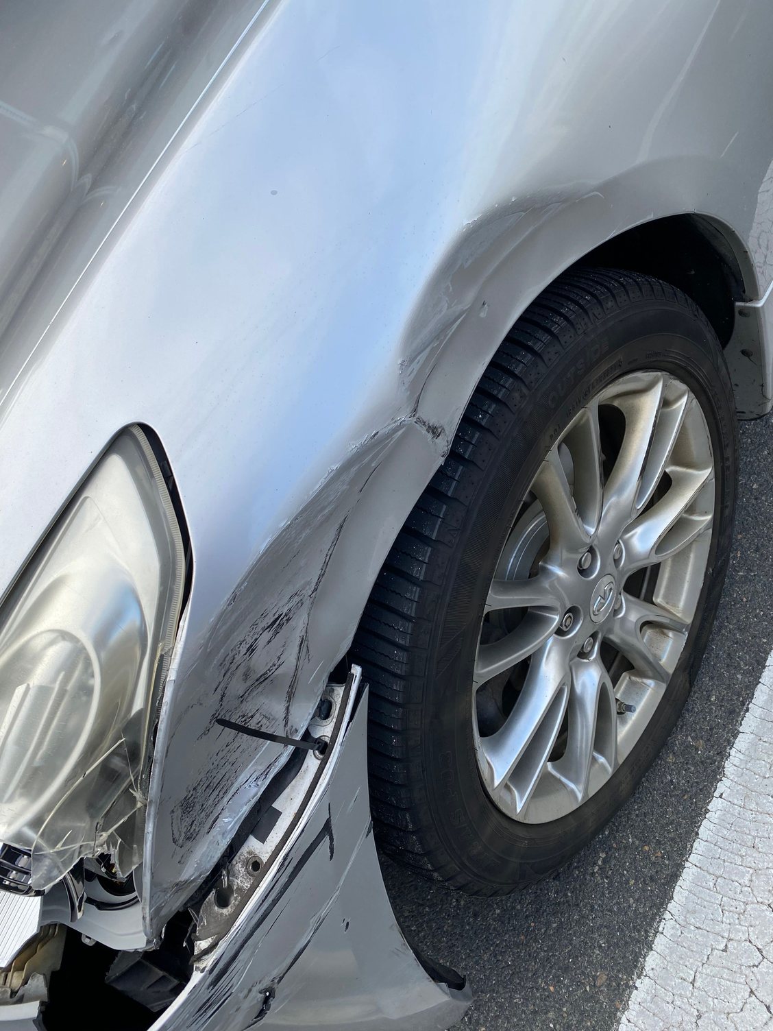 That looks like a pretty good hit, hood and fenders look misaligned, If you can even find a genuine Infiniti Headlight assembly, I think that alone is at least $1000.00 these cars had very expensive parts when new, and now it's only worse. I tried to buy some new interior trim pieces for my 07, and they are out of stock forever! IMO, you'll have to at least DOUBLE the amount they offered to fix your 08...
