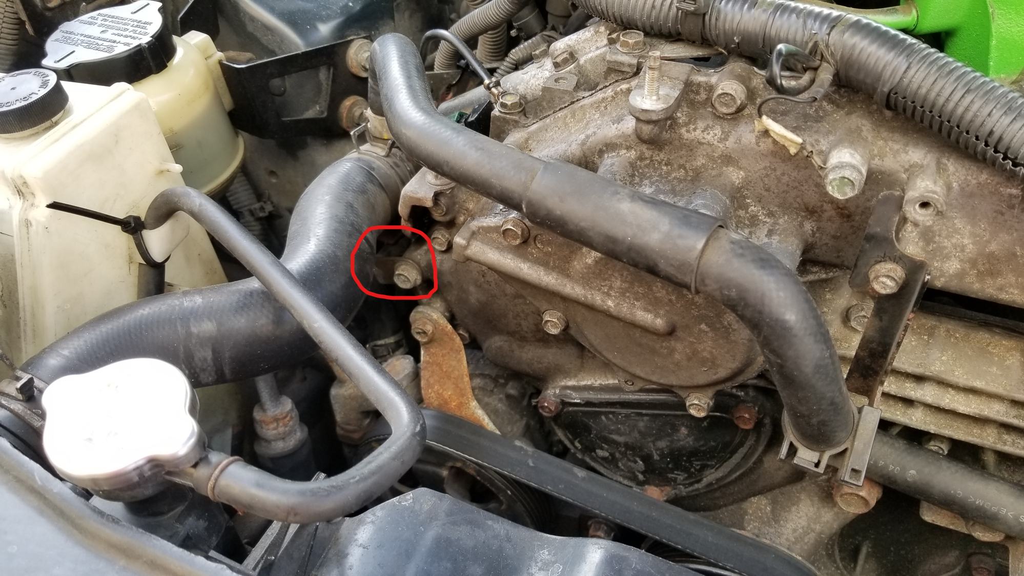 Thanks for replying with the pic so quickly! You're awesome. That timing cover looks a bit different than mine (is that a rev-up?), but ill go look for something similar. I'll also reference FSM power and grounding section like you suggested. I'm going to go check it out on my lunch break because i'm curious and don't want to wait until I get home.