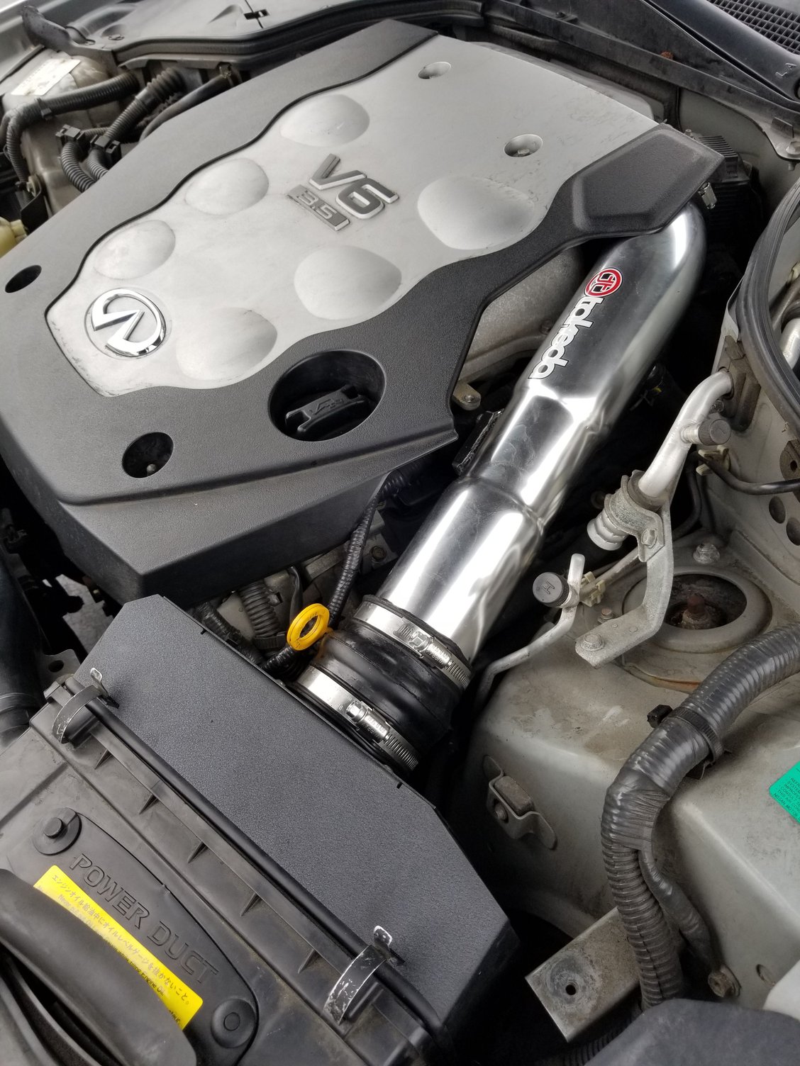 I just installed a Takeda aFe Power, Stage 2 Pro Dry S intake with airbox adapter, on my 2006 G35x sedan. The car is breathing a lot better than stock, it sounds and drives great, and with my straight piped exhaust, the car is much more powerful than stock, and honestly sounds better than a Ferrari when accelerating (I live in a very affluent area East of Seattle about 5 minutes from Bill Gates and Jeff Bezos, where exotics are very common on most sunny days, and I still think my car sounds better than almost anything on the roads here other than a McLaren.