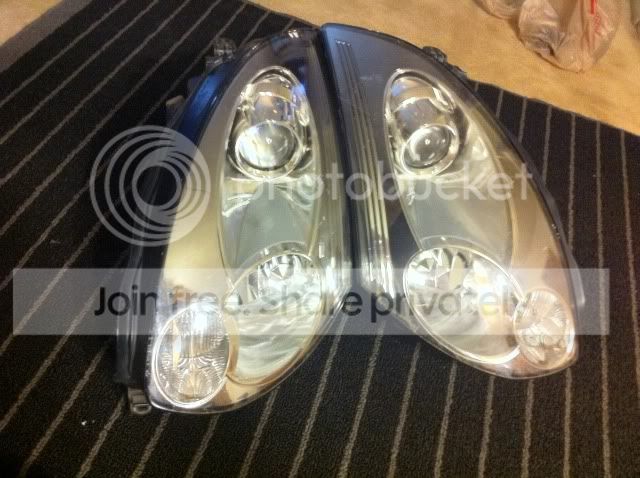 Helping a friend sell his used headlights. They're complete with no missing tabs and all the bulbs are in place, no ballast. There are surface scratches on one and blemishes on the other, which both can be buffed out using the 3m headlight restoration kit.