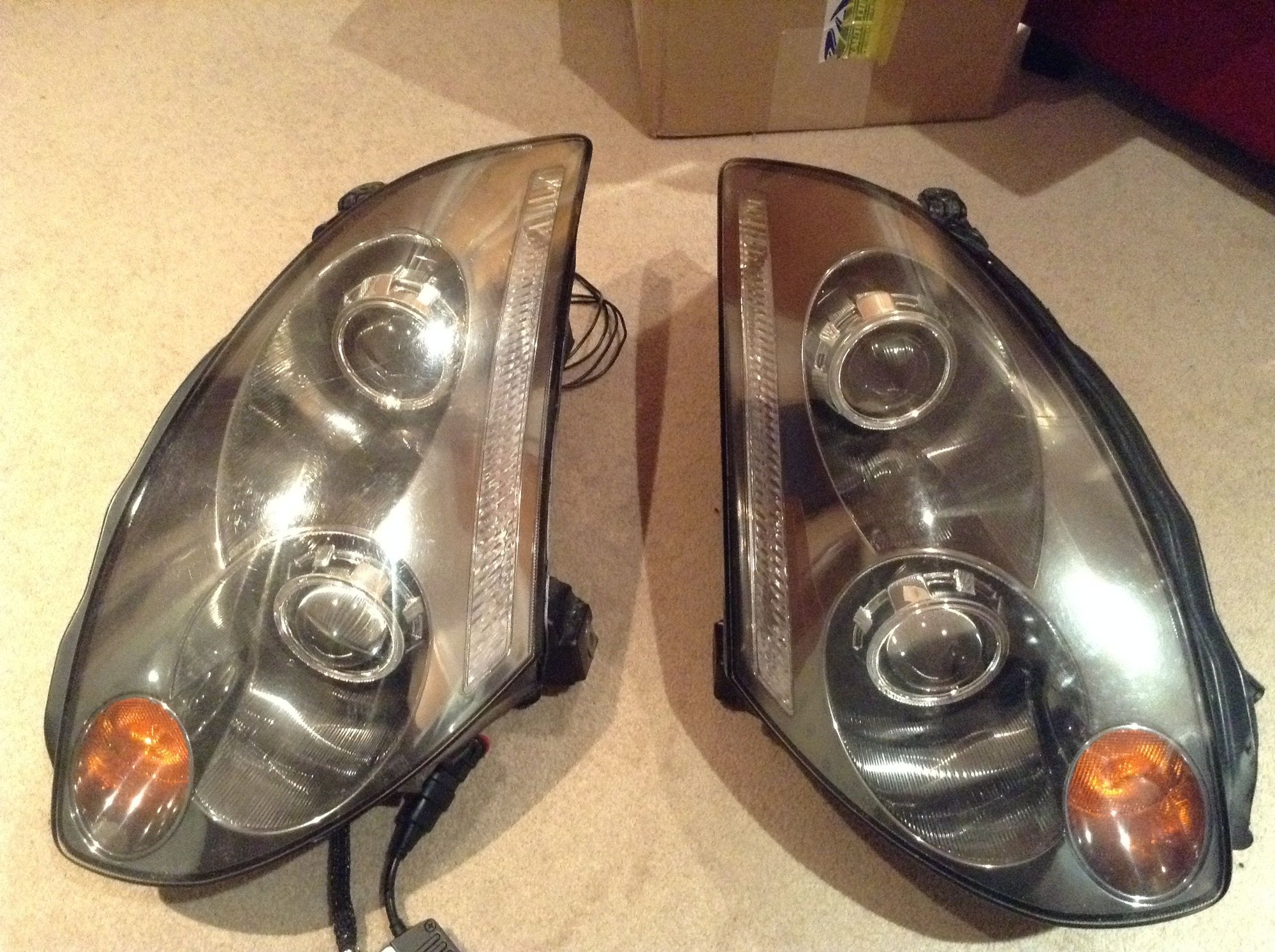 Hey everyone, I've been on the fence about selling these for a long time now, but I don't foresee myself re-installing these headlights again anytime soon ever since I took these quad retrofit headlights off my car over a year ago. The theme of my vehicle has changed so I'm hoping to pass these headlights on to someone that will appreciate them.