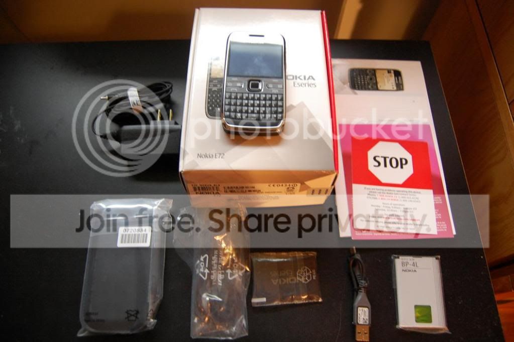 I have a brand new E72. Comes with box, manuals, and all original accessories with 4GB sd card. I took it out of the box, used it for about 5 hours, with about 5 total talk time minutes and put it back. Like new. No scratches