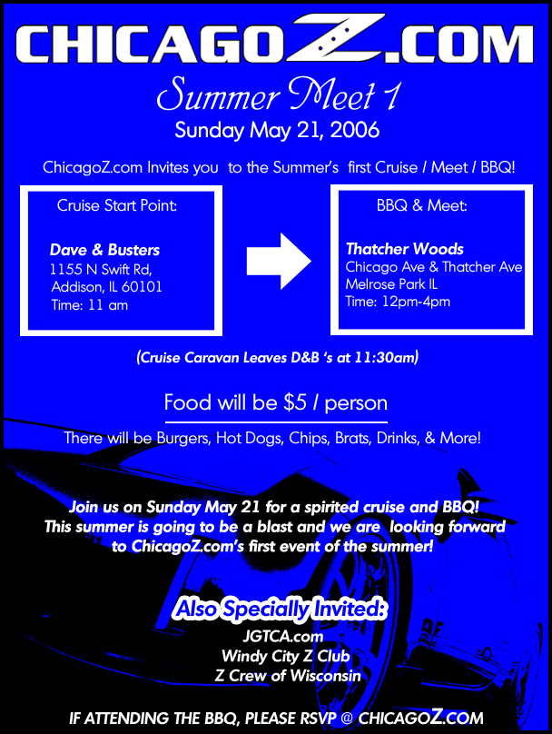 If you plan on coming to the BBQ, please RSVP @ ChicagoZ.com so we know how much food to buy. THANKS