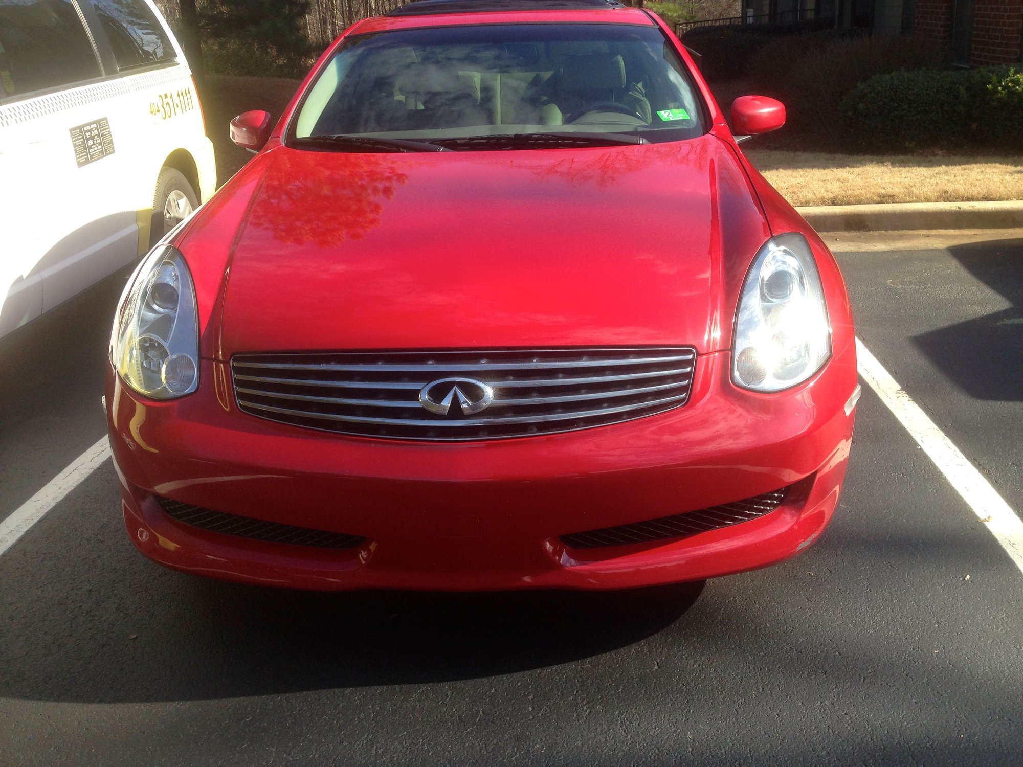 I bought my first G35 about 3 months ago & I am very pleased with it so far. It's a 2006 coupe Laser Red loaded with the premium, sport, & performance wheel & tire packages. I have also made a few upgrades to it which includes: clear corners, window tint, Stillen Z-Tube W/ K&N filter, Z1 Motorsports plenum spacer, & a Stillen lightweight crank pulley. More to come soon. Best all around performance car I've ever owned. I would like to use this forum to learn more about what these cars have to offer & to meet new people as well.