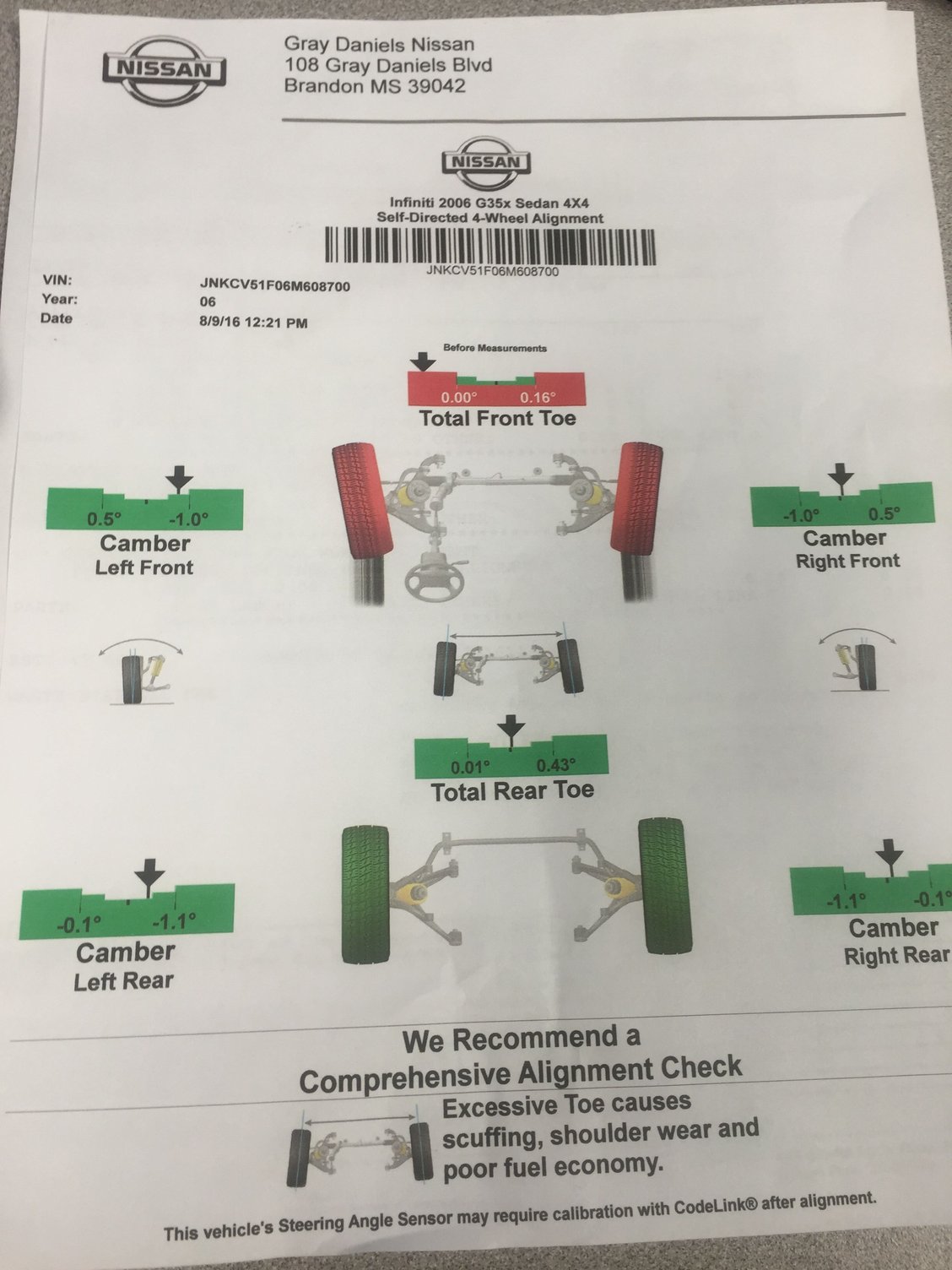 Took it in for an inspection yesterday and they told me the valve cover is leaking along with "some other fluid" LOL guess since they were too simple to figure it out that will be my first weekend project. Of course I need an alignment something serious