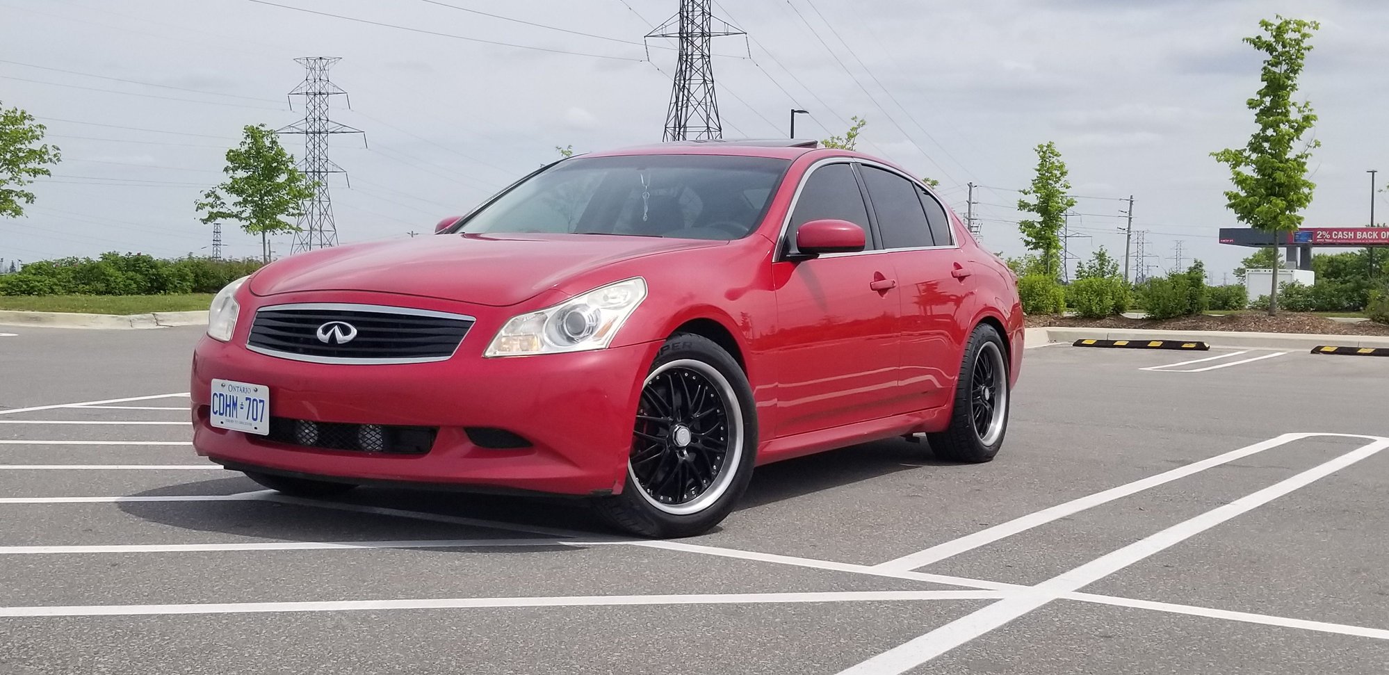 Thanks! I've had it for about 3 years now and absolutely love my G! Slowly been tweaking it, added the exhaust a month ago, added red lights in the grill, replaced license plate lights with custom red LED strips, relocated front plate with custom made bracket, added 10K lumen fog lights in the lower grill, wrapped the grill with black carbon and repainted the badge surround to match. I am in the process of getting coilovers and custom A-arms made from a local shop that specializes in G35/350Z chassis. I want to drop it 1-2" to give it a more aggressive stance and help with the handling. Then I'll fabricate my own front and rear strut bars to help in the corners.