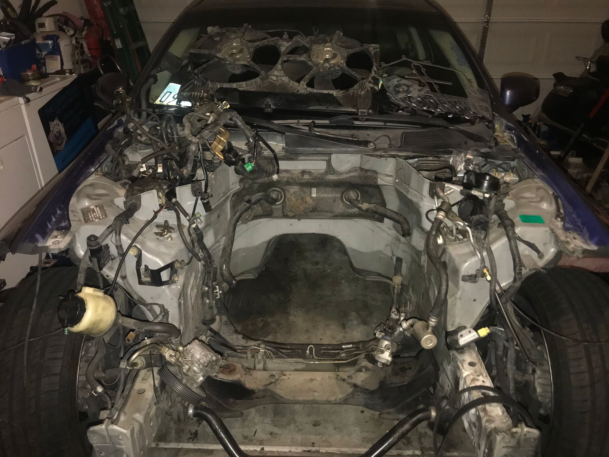If the engine and tranny are back in the car then the hardest part is definitely done, driveshaft, exhaust and the bottom will be done. Radiators, belts, accessories, valve covers, intake, coolant system and the top will be done.