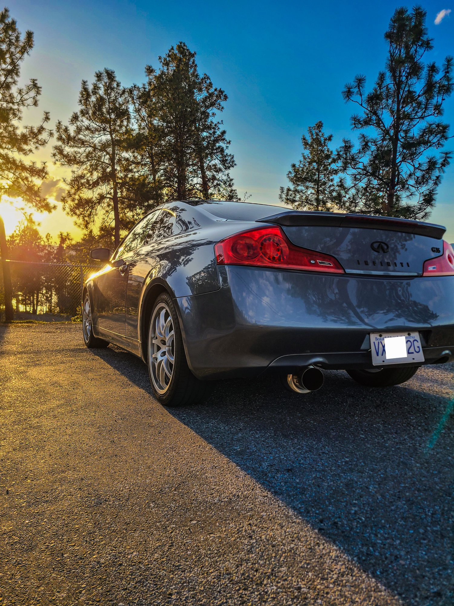Hello my name is Ricky got my G with the vq35de non-revup (auto) 8 months ago been a blast so far, I've done a cat back z1 single exit exhaust and modified the airbox slightly, amazon catch can cheap but works valve covers and front main aswell as whole front end is done. im upgrading to all poly bushings in the rear aswell as the diff bushing. Rear tires are almost gone so gonna try and shove some 275s under there if not 265s. Right now im just gonna do FBO and forged internals in the future for a clean N/A build. Found some metal shaving in the valve train on Bank 1 spark plug tube cut open filter but zero metal no metal in oil either some scoring on the cam lobes and a weird looking ring on one of my lifters, some raspy sound on the b1 side but goes away intermittently. she drives perfectly fine though. Also idk if this is the thread to ask on but im looking into custom making a 6 into 1 header is this feasible on this car or even practical i dont think its practical but id like to try any thoughts?