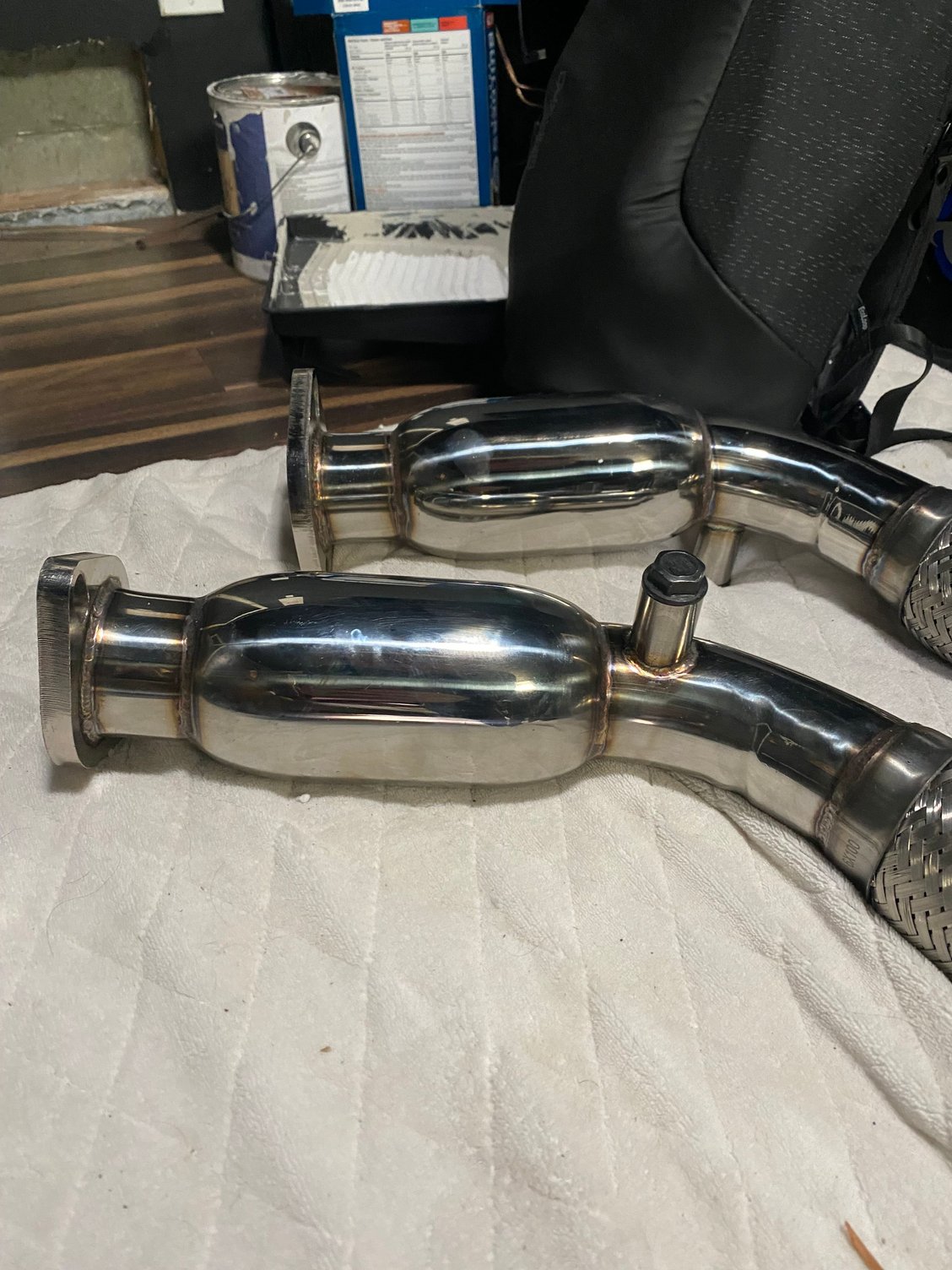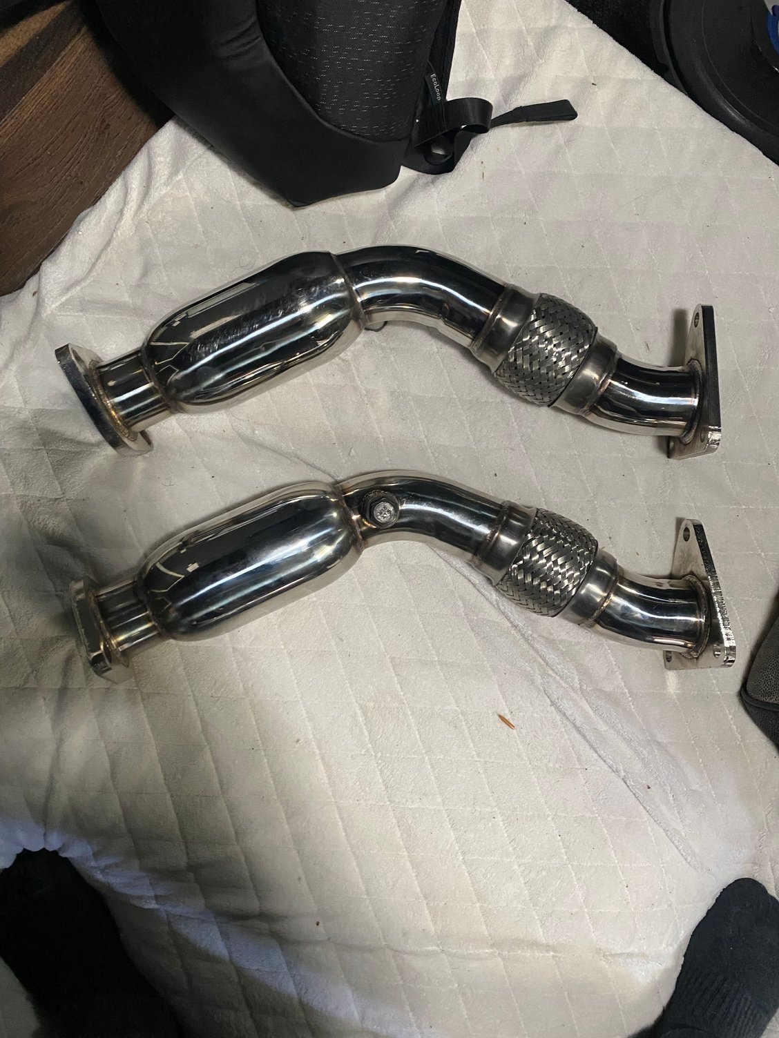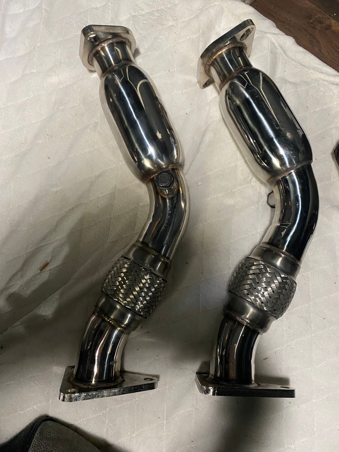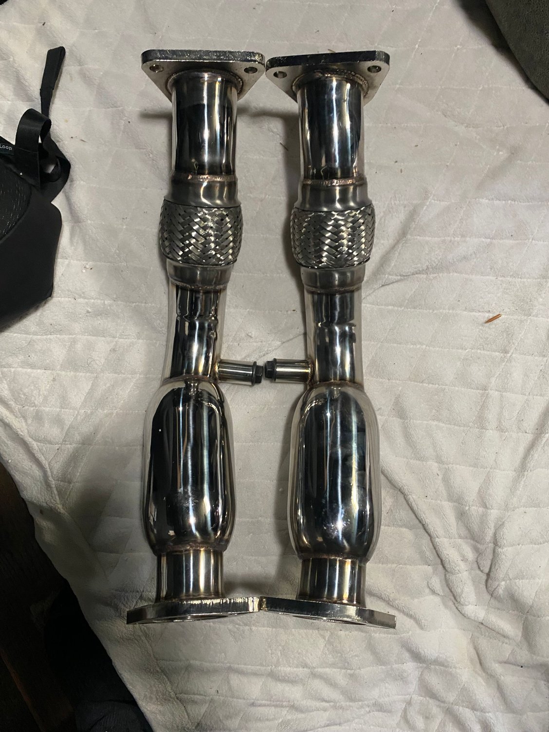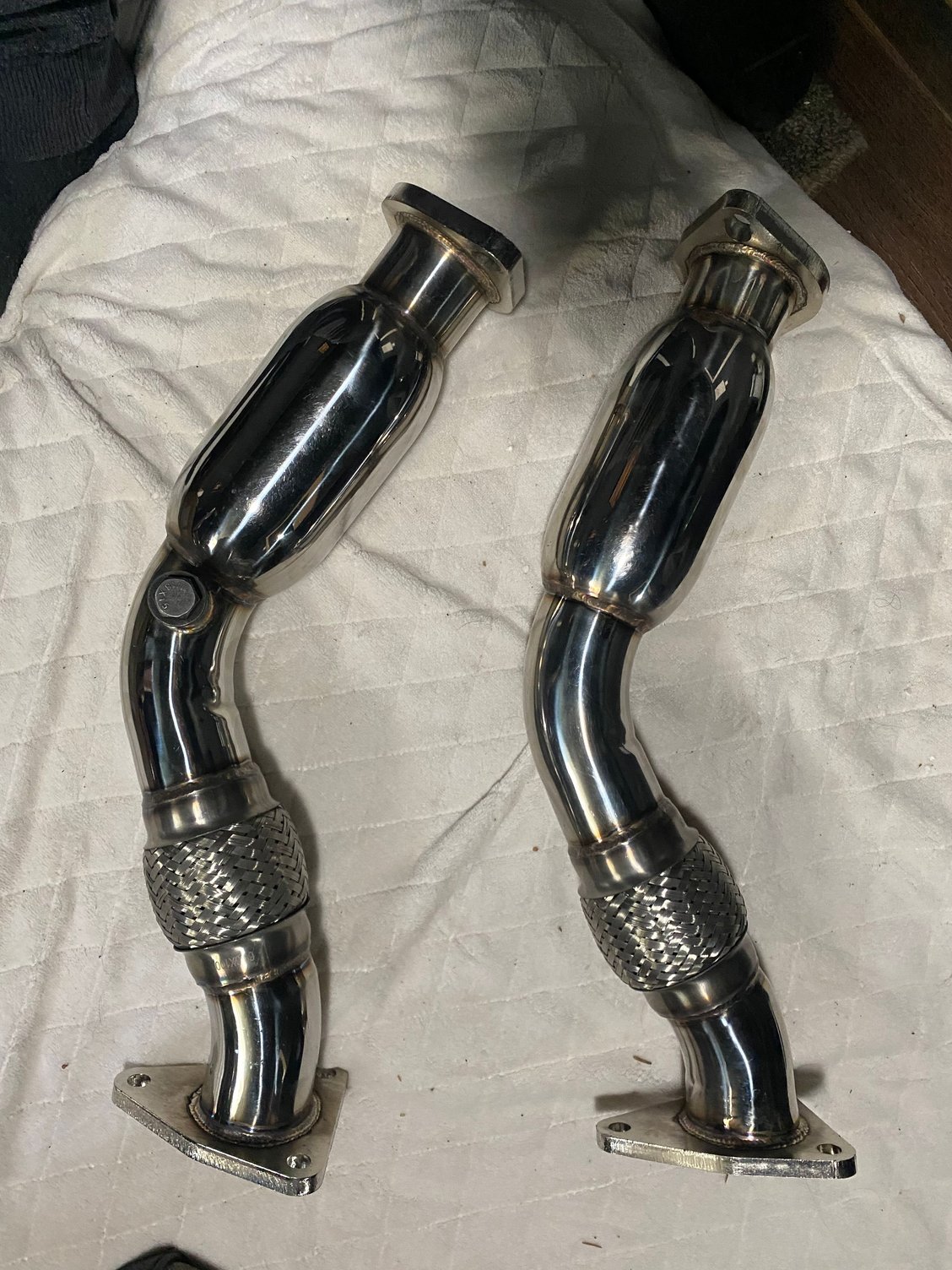 No, they won't fit. DE/revup test pipes wont bolt to HR headers because they have a different bolt pattern and shape. You have to use the HR testpipe version with your 08 sedan.