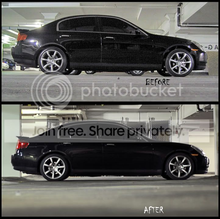 I've lowered the G sedan on some Eibach pro sports, not a drastic drop, but it's a DD, and I;'m happy with how much wheel gap was gotten rid of.