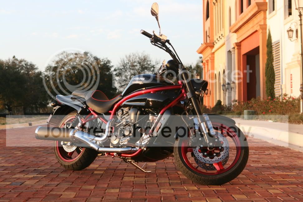 Here's my 2005 Kawasaki ZX6R Magma Red. Pic was taken in downtown Jacksonville, FL
