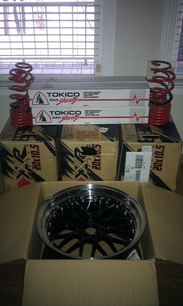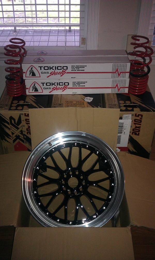 .....XXR 521 20x10.5 all the way around. Also received my tokico blue struts earlier this week. Been having my tanabe DF210's for a min...installing everything next week. Will post pics next weekend...to be continued...
