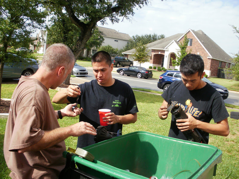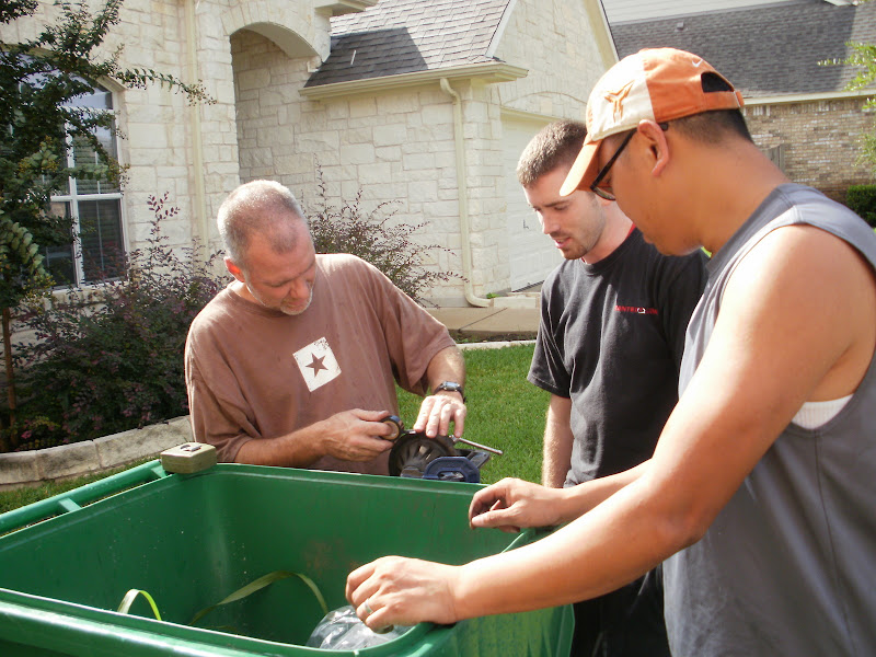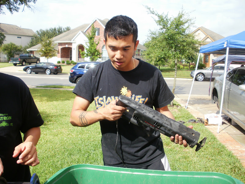 We would like to thank all those who attended the Tech Day! Special thanks to Jose and his family for hosting the event. We had about 20 people show up and help out/hang out at the event. Halfway through it rained on us and this gave us the perfect opportunity to go inside and have some home made Lasagna. The kids enjoyed the rain by jumping on the trampoline while it was raining, and the adults watched the game on the big screen. After dinner the sun came back out again and we resumed our previous tasks.
