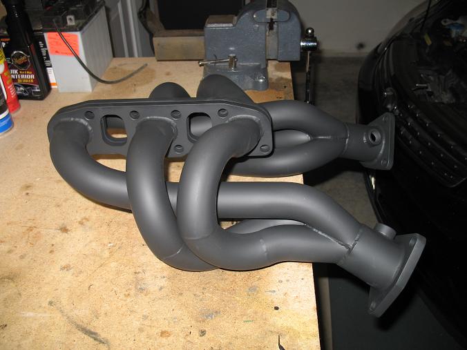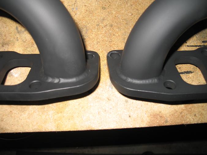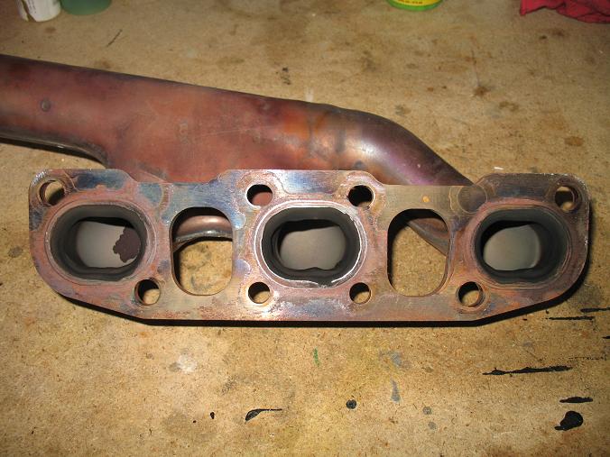 Impressions? So far, so good but havent really been able to get into it too hard because the coating needs a few heat cycles to cure before you subject it to full throttle temperature. But I can already tell the midrange pull is much better and it just revs more quickly. Hard to explain, but the exhaust actually sounds more mellow and smooth than before. If you look at the pix, you can see how restricted the stock manifold exits are. Only 1.5" diameter (1.76 sq.in area)! The header collector is 2.25" (3.97 sq. in. area) or 2.25X the cross-sectional area of the stock setup. Ill dyno next week to see if they actually do anything for power.