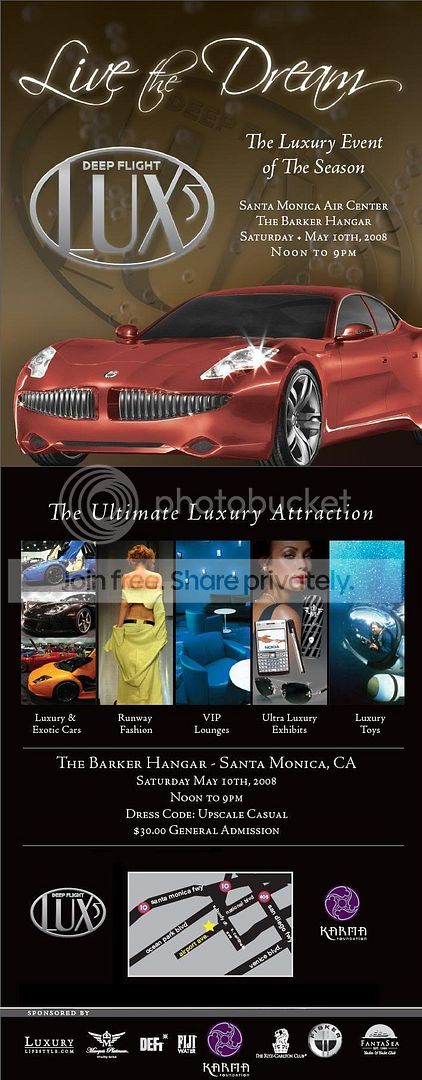 LUX 5 is similar to the VIP Auto Fashion Show we did a couple years ago but this time it will be much more upscale and include Ultra Exotic Cars, Private Jets, Yachts, Helicopters, Fashion Shows and lots of other toys with which you'll surely like to play ;-)