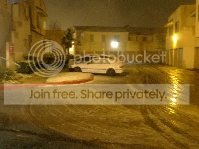 We get snow about every 25 years in Valencia/Santa Clarita. Temp at 7PM last night was 33 degrees but SLICK was tucked away in her warm garage and never saw the "stuff!"