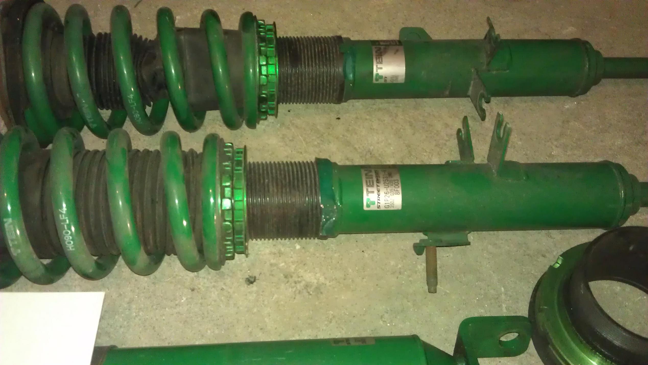 Hi All, up for sale is a practically brand new setup of Tein Basic Coilovers. They have about3,5xx miles on them. No leaks or blown struts. I am asking 550.00 shipped plus PayPal fees. I am parting out my car and have other parts available here :https://g35driver.com/forums/steerin...-part-out.html