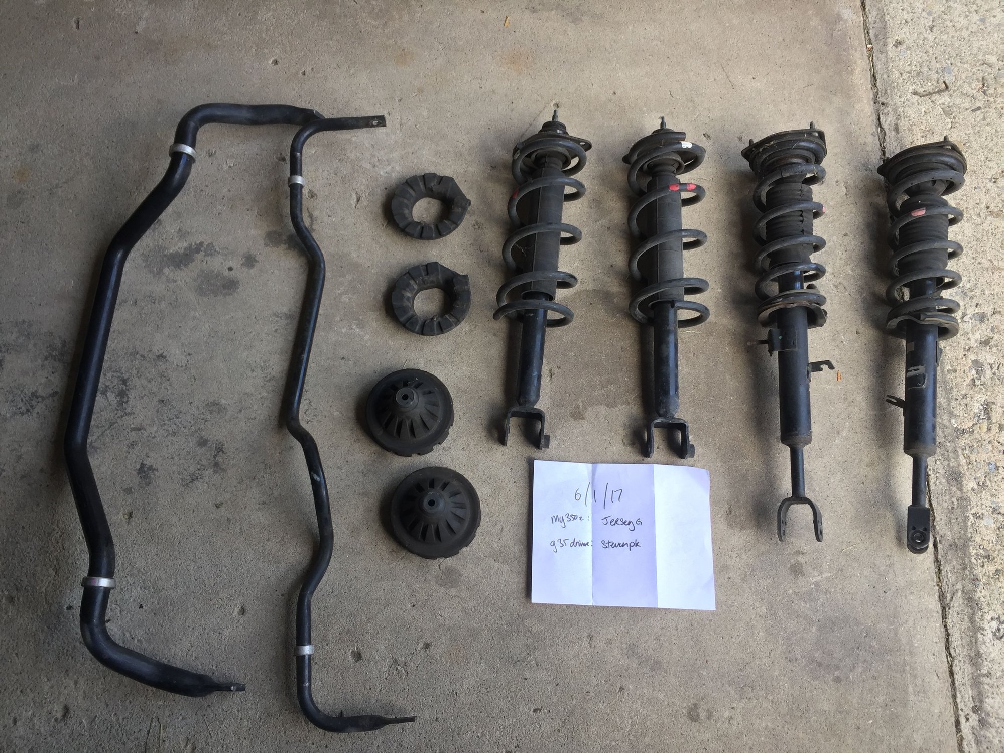 Some OEM 350z suspension parts for sale here. All items off of 2003 350z, around 60k miles when removed. I was planning on keeping them until I got rid of the car as spare parts but I'm moving and will no longer have a garage to store these. Prices do not include shipping or pay pal fees, buyer is responsible for both. Local pickup available, parts located at 07024 (Northern NJ).