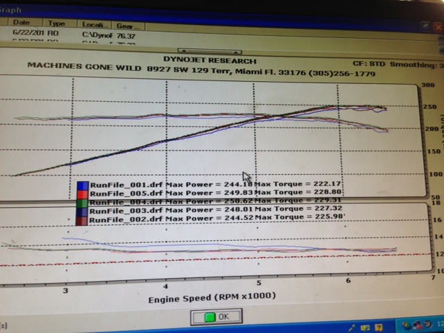 My current mods installed before it was flashed (2004 6MT), it did 244whp: