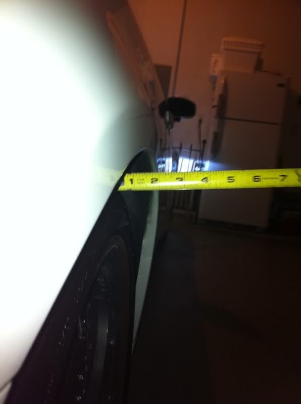 i would take a 2x4 piece of wood or something similar, just long enough to lay flat on the rim and short enough to completely get it to touch the bottom of that fender. Maybe even a pizza box would work. This would get you a better measurement on what size spacers you're looking for. i can't find a good picture showing this, i might have to snap some pics later if you still need clarification.