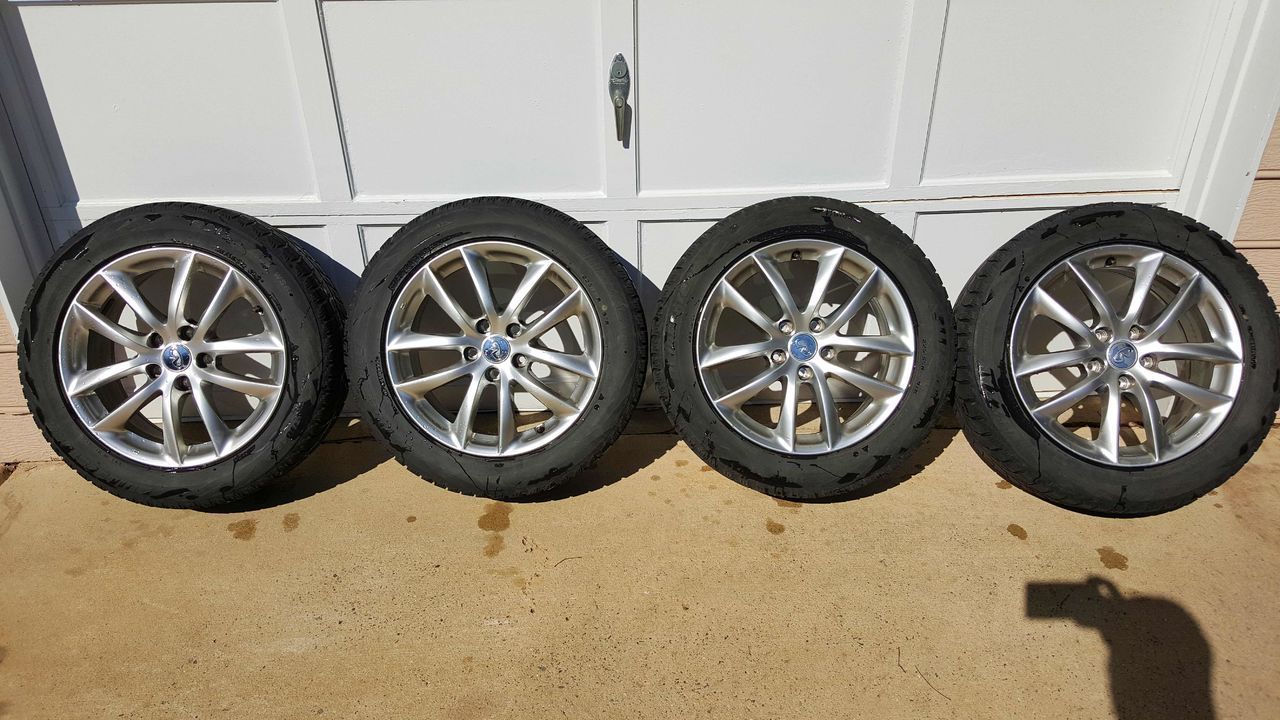 Will fit 2007+ Infiniti G35s (and newer G25 models) with 5 x 4-1/2 bolt pattern. Wheels currently have 225/55/17 Bridgestone Blizzak tires mounted, but will need to be replaced before snow use (about 4/32 left on all tires). I used these as my "winter wheels" for my 2007 G35S for the past 7 years without issue. Posted price reflects that three (3) of the wheels have some clear coat blemish and two (2) have a little curb rash that could easily be repaired.